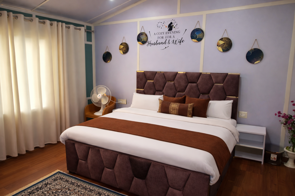 Our Himalayan View Deluxe Room is ideal for guests who prefer a more private and homely stay. With beautiful mountain or valley views, the cottage provides both comfort and space for a relaxed holiday. The room includes a comfortable bed, attached bathroom, clean interiors, and all basic amenities required for a pleasant stay. The peaceful surroundings make it perfect for families, couples, or small groups looking to unwind in the hills.