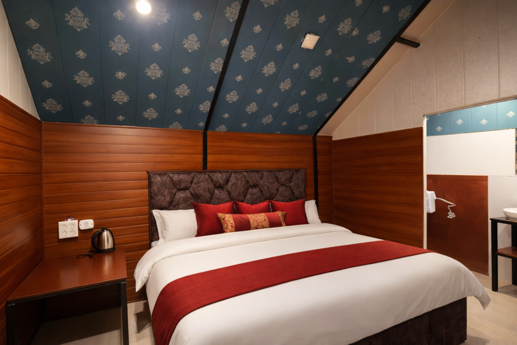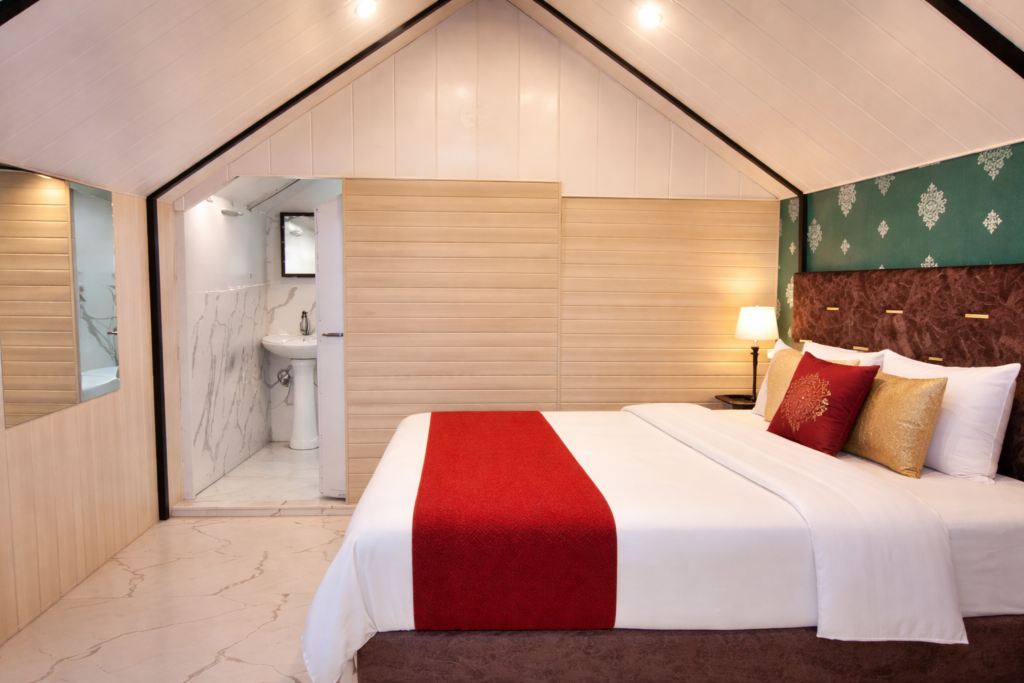 Our Deluxe Tent offers a peaceful mountain stay with beautiful valley views and fresh Himalayan air. The tent is designed to give you a cozy and relaxing experience. Inside, you will find a comfortable bed with clean linen, an attached private washroom, proper lighting, and basic amenities to ensure a comfortable stay. Outside, you can sit and enjoy the calm surroundings, sunrise views, and cool evening breeze.